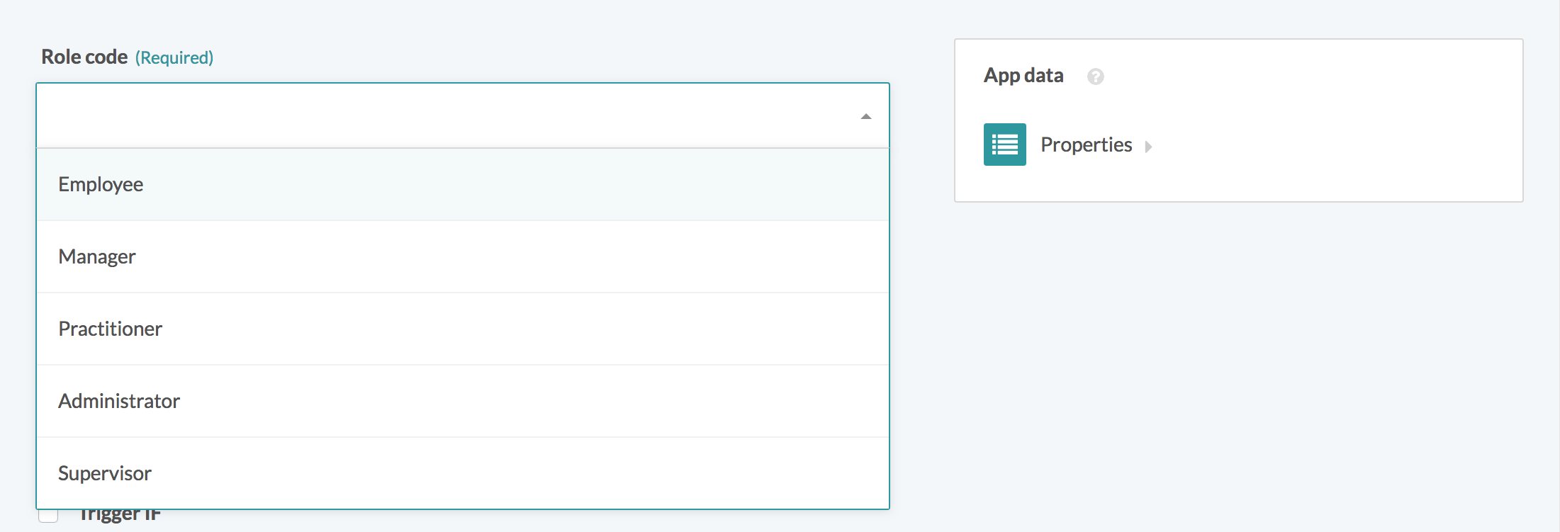 Role code このトリガーに対してフィルタリングする従業員の種類を選択します。以下のオプションから選択できます。